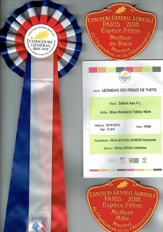 Bien que de petit gabarit, il rencontre généralement un certain succès en raison de son type et de ses proportions harmonieuses. La FIFé ne reconnaissant pas les titres LOOF, Léonidas a effectué un double parcours et a été inscrit au tableau de reconnaissance de la race en FIFé.