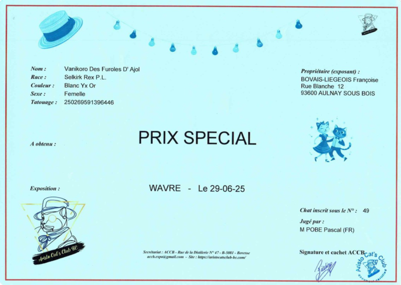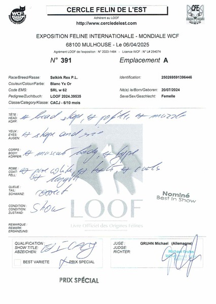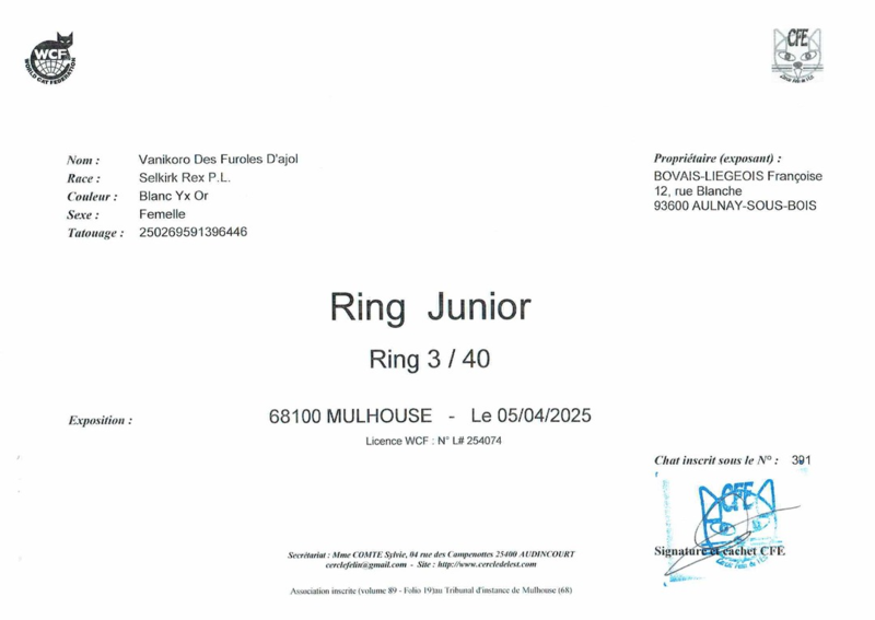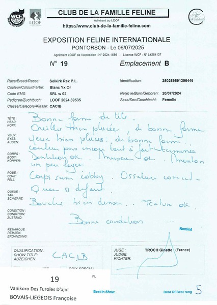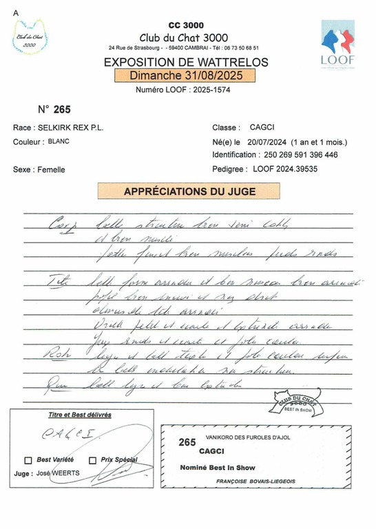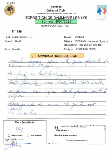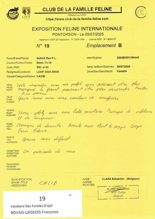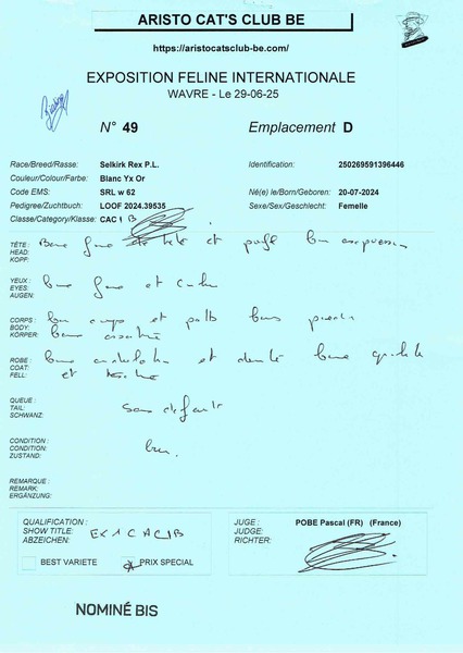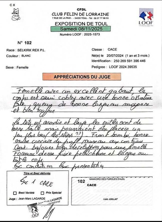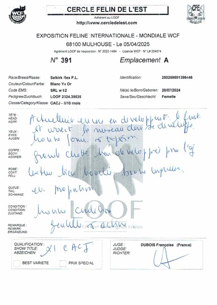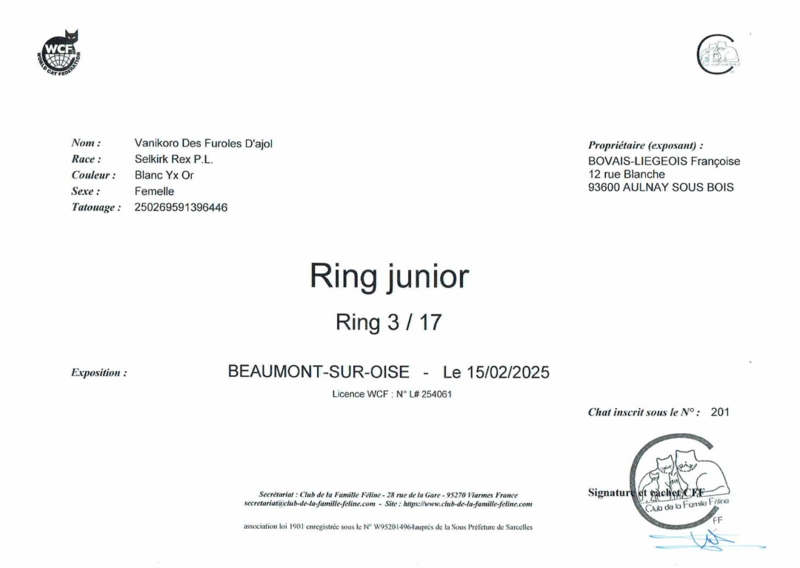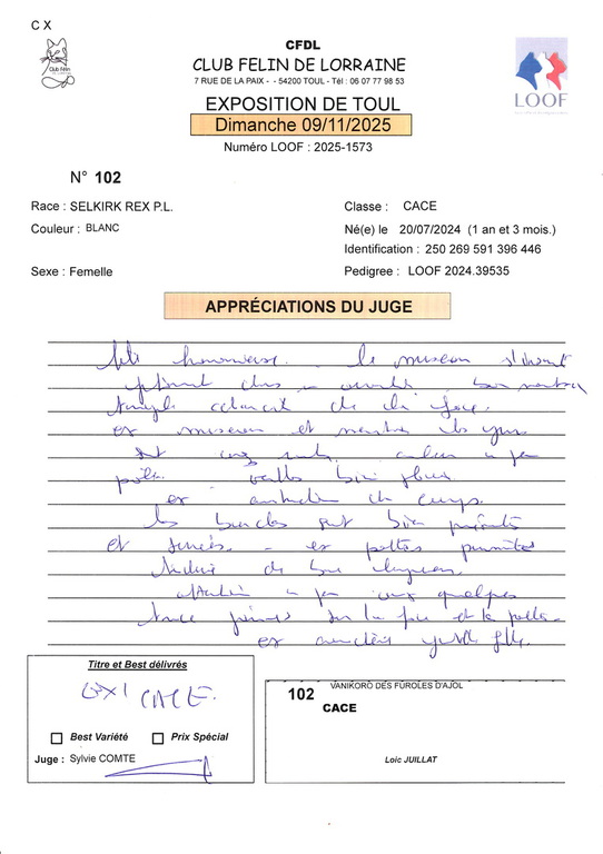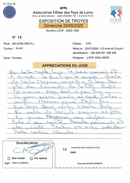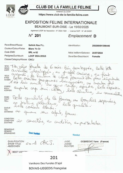 Le samedi 15/02/2025, à l'exposition féline de Beaumont-sur-Oise (LOOF et WCF) organisée par le