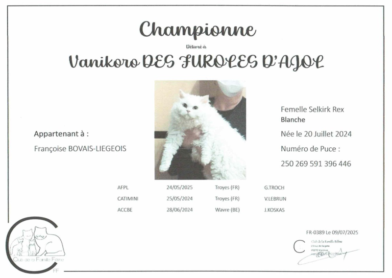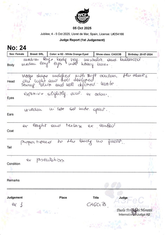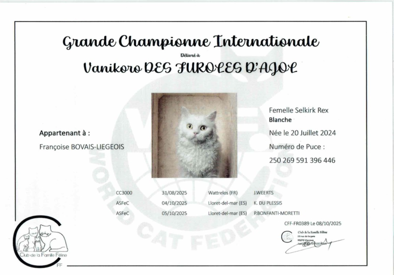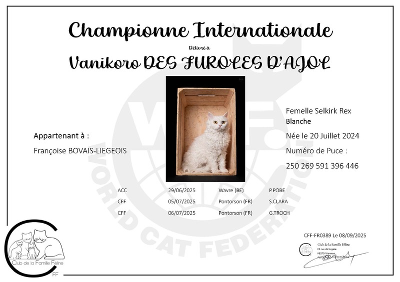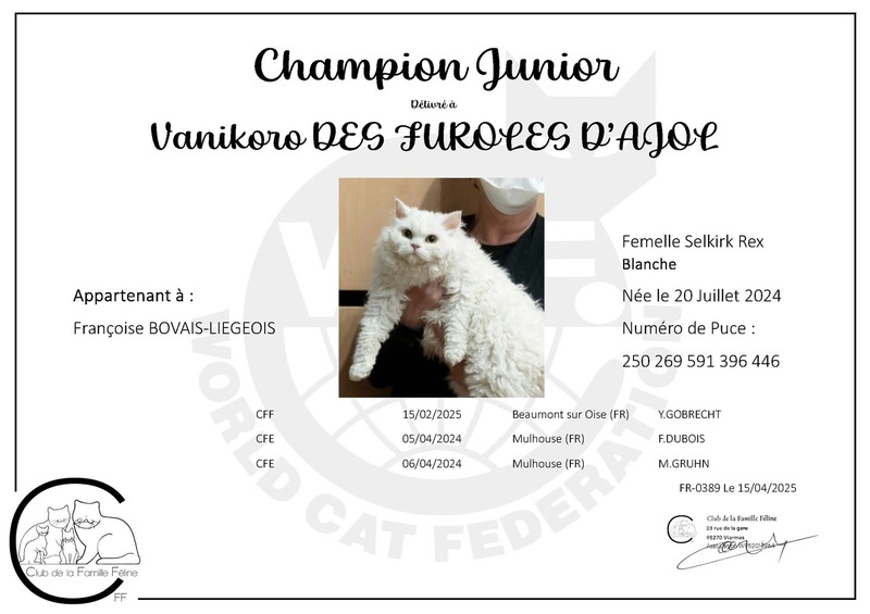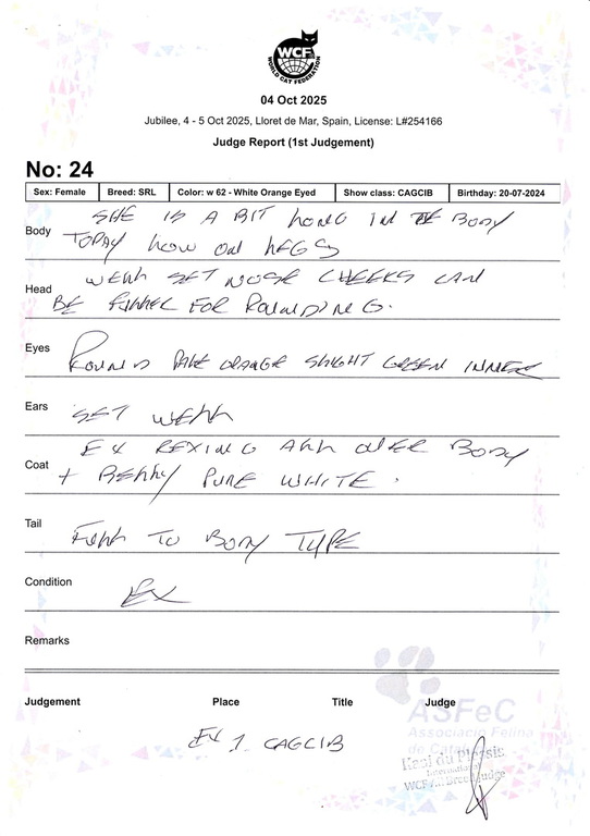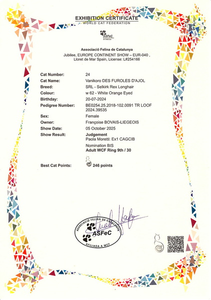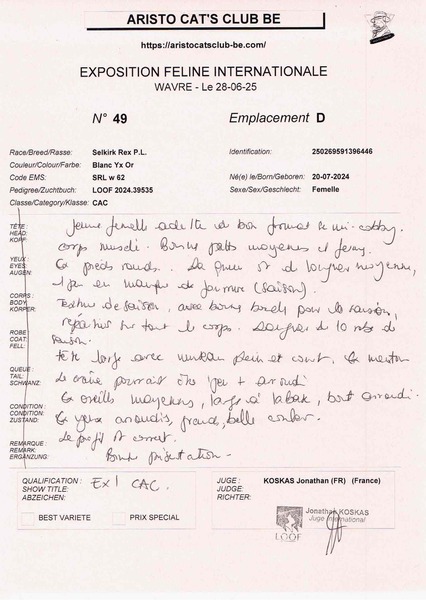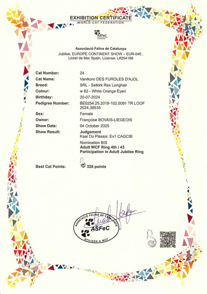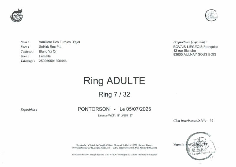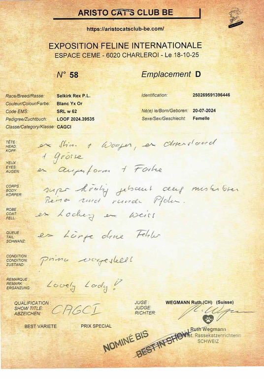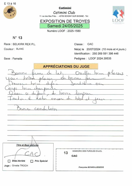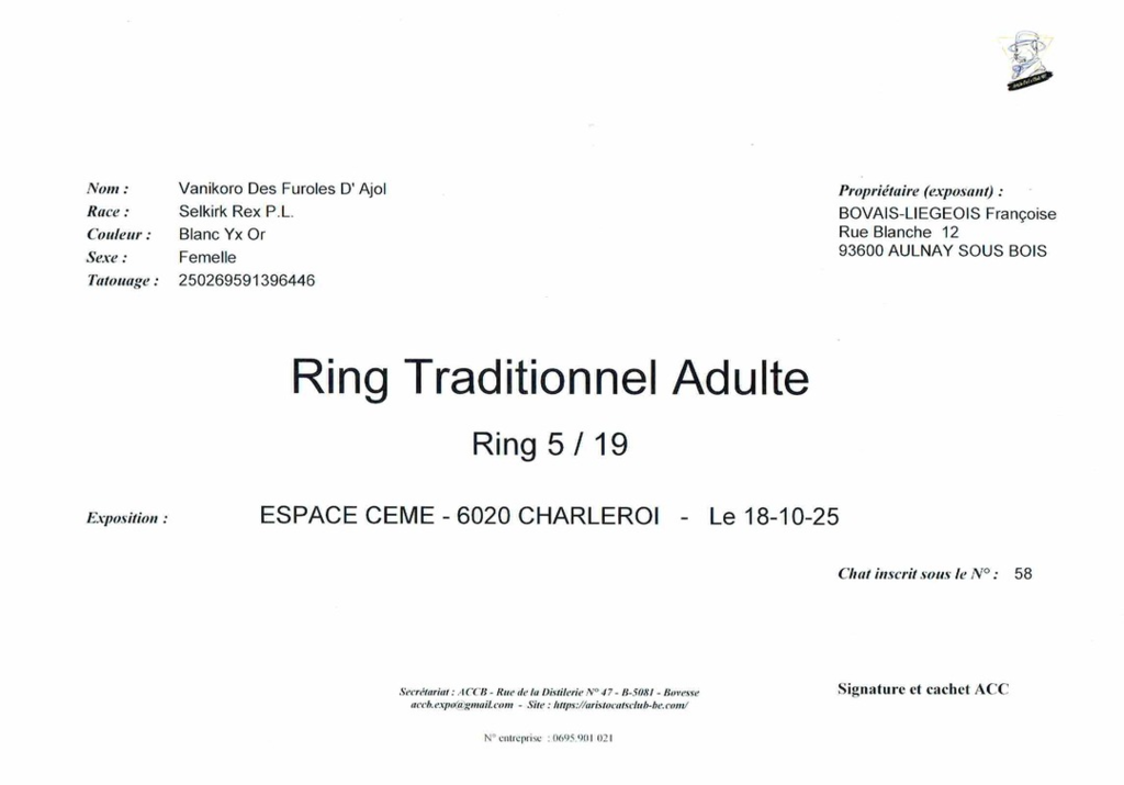Le samedi 15/02/2025, à l'exposition féline de Beaumont-sur-Oise (LOOF et WCF) organisée par le