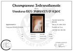 M. Yann Gobrecht*FR et a obtenu un "Excellent1" +Best Variété + Nomination au BIS. "Très jolie femelle de 6 mois bien développée. Belle tête arrondie développée,