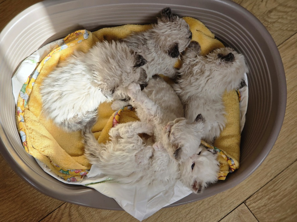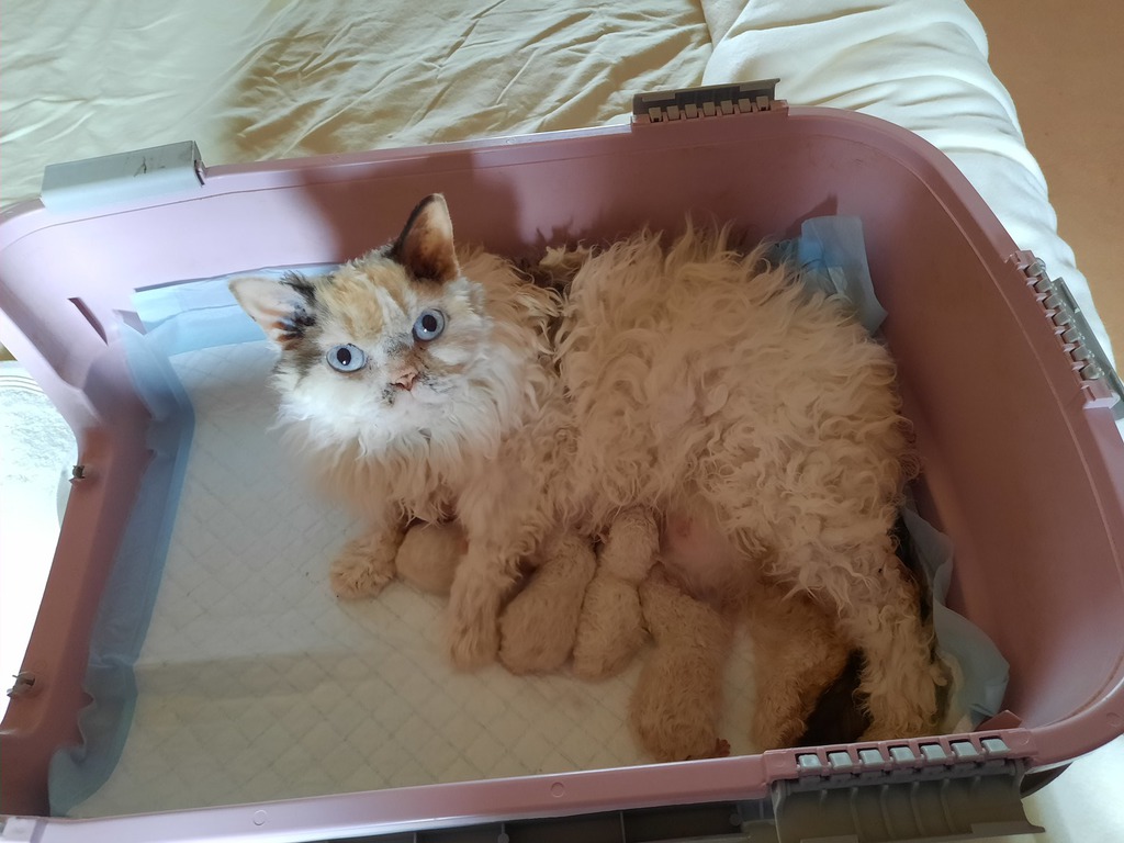 Les femelles sont évidemment tortie et les mâles seal ou blue (les deux parents sont porteurs de dilution) possiblement tabby pour au moins deux d'entre eux.