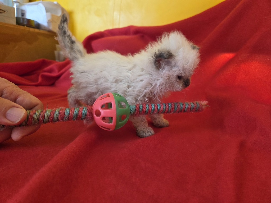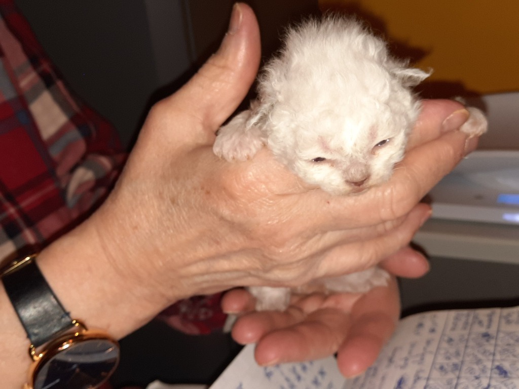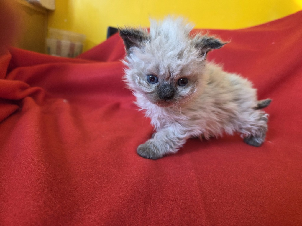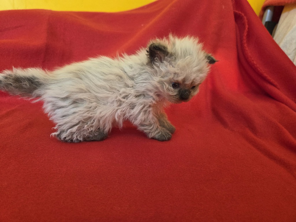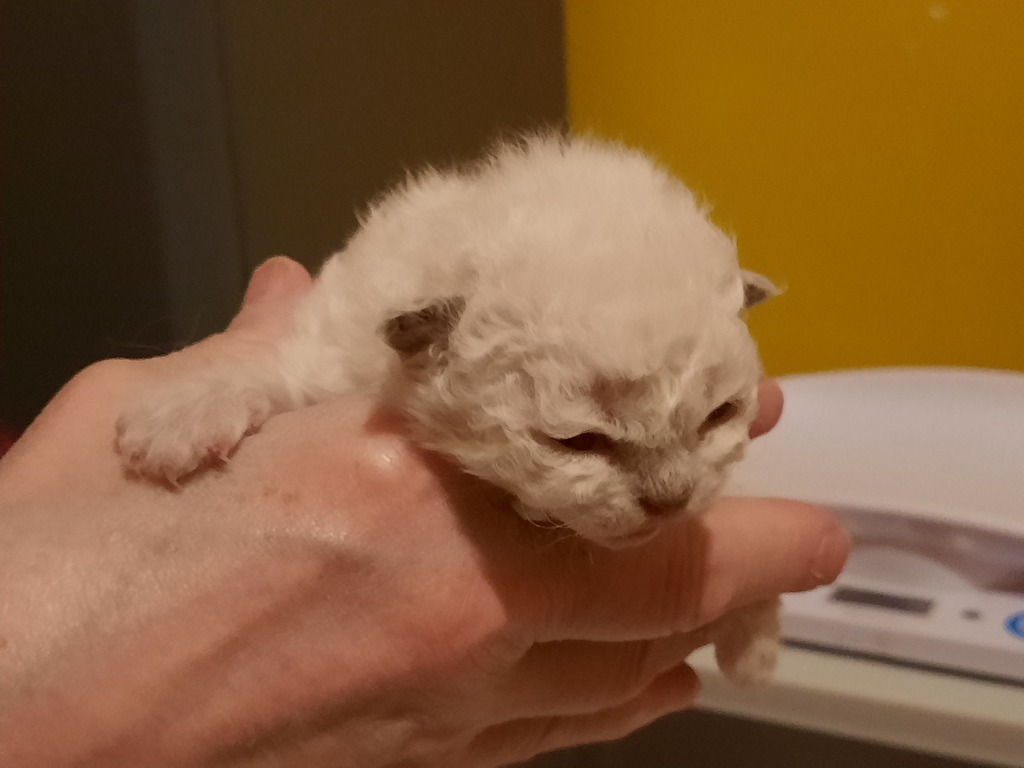 Les chatons colourpoint naissent blancs, les chatons blancs naissent blancs avec un tache (ou deux ) sur la tête (correspondant souvent à la couleur et au patron tabby masqués). Elle(s) disparaîtra(tront) entre l'âge de 6 mois et un an, au fur et à mesure des mues.