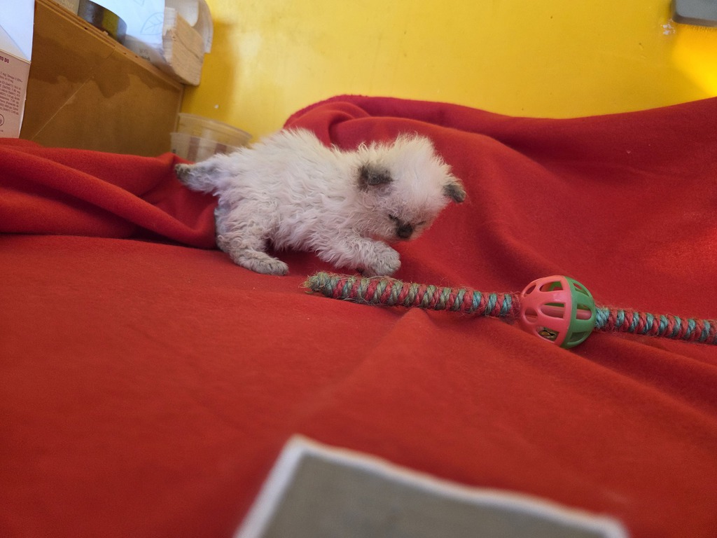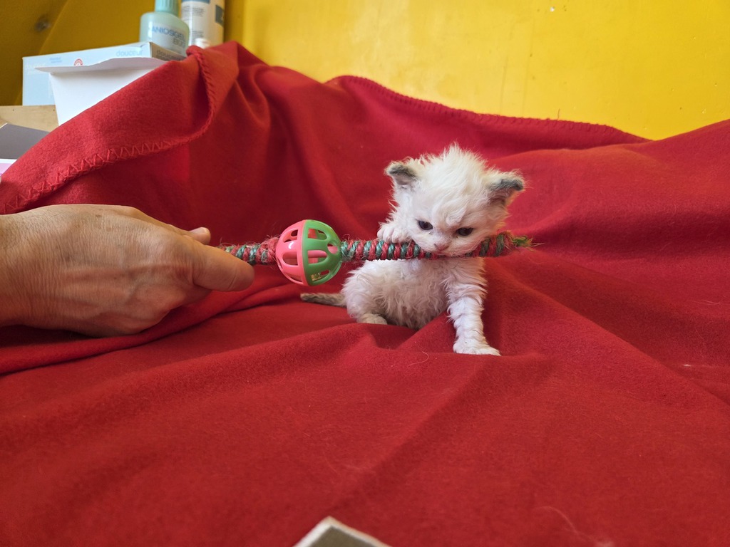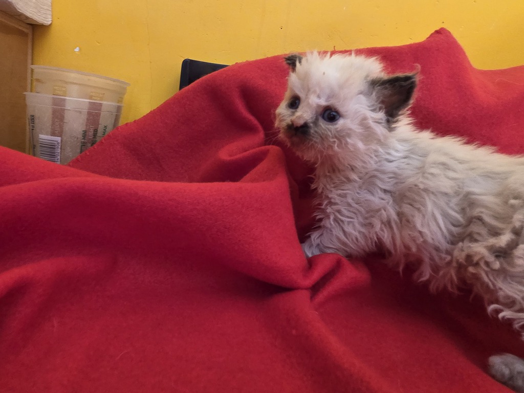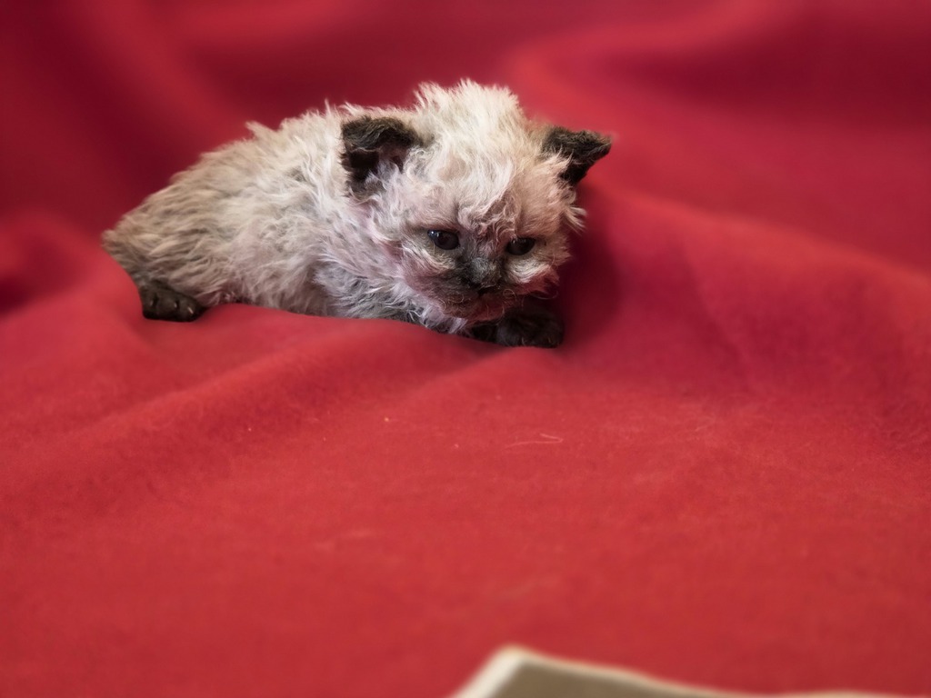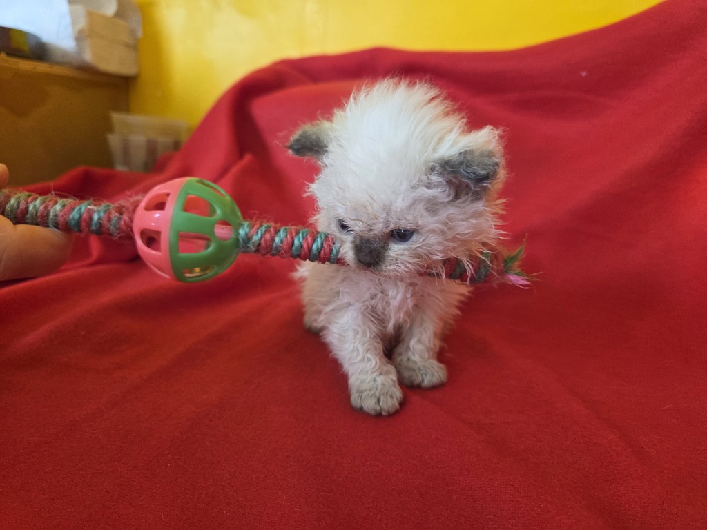 Les chatons colourpoint naissent blancs, les chatons blancs naissent blancs avec un tache (ou deux ) sur la tête (correspondant souvent à la couleur et au patron tabby masqués). Elle(s) disparaîtra(tront) entre l'âge de 6 mois et un an, au fur et à mesure des mues.