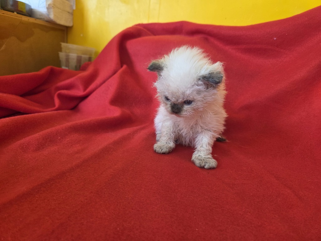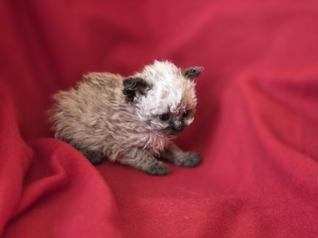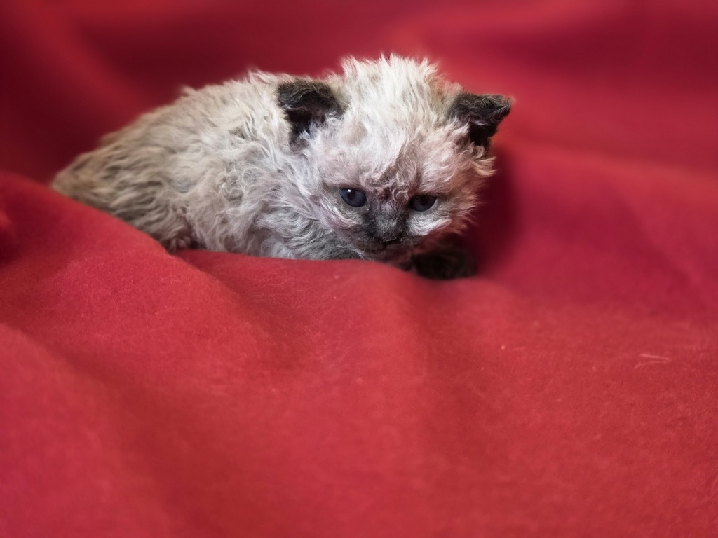 Taux de consanguinité : 14,2 %, ancêtre commun : Elite B QGC (TICA), SupCh (LOOF) Boucles Monsieur Atchoum (grand-père paternel & arrière-grand-père maternel), triple meilleur de race Selkirk rex LH / Meilleur mâle au Concours Général Agricole de Paris en 2019, 2022 et 2023.